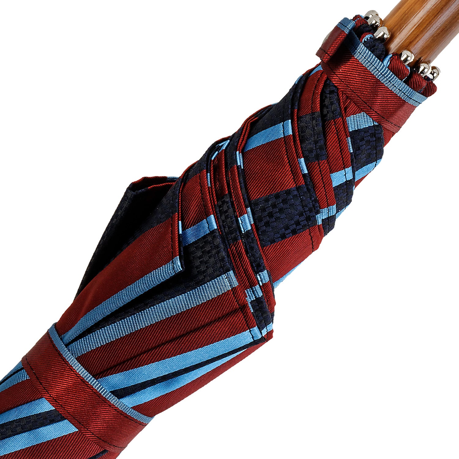 The elegant handle made of polished Congo chestnut gives the umbrella a natural and powerful look. Each umbrella comes in a breathable fabric bag in black/beige tones, optimally protecting both the fabric and the handle during transport.